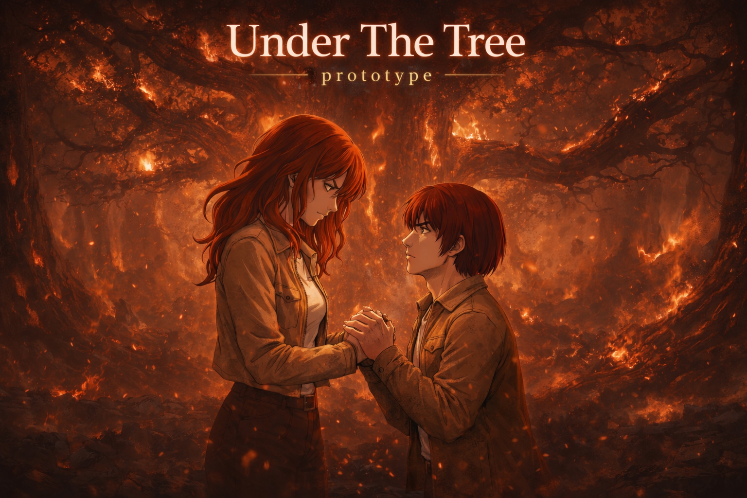 <--> MOVE LEFT AND RIGHT E for switch you have to switch in midair both chachter have diffrent abidltes Under the Tree is a 2D vertical platformer about survival, choice, and sacrifice. Trapped inside a burning, godlike tree, you control two souls sharing one body — Salma and Saleem. One is fast, one can reach higher. Survival depends on switching between them at the right moment. As the fire rises, the climb becomes harder, the choices heavier, and the bond between them is tested.